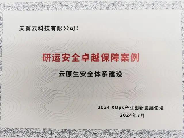 天翼云云原生安全体系建设 荣获研运安全卓越保障案例奖