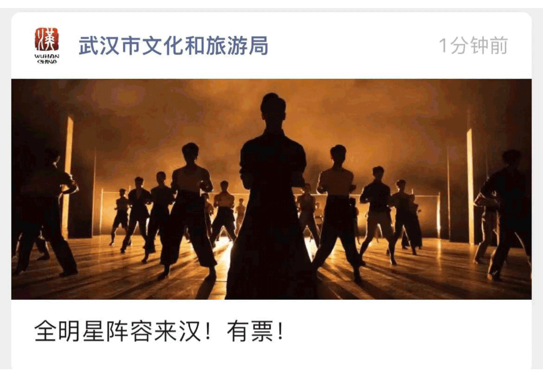 关注「武汉市文化和旅游局」公众号,在对话框回复“演出”即可获取抽奖方式。