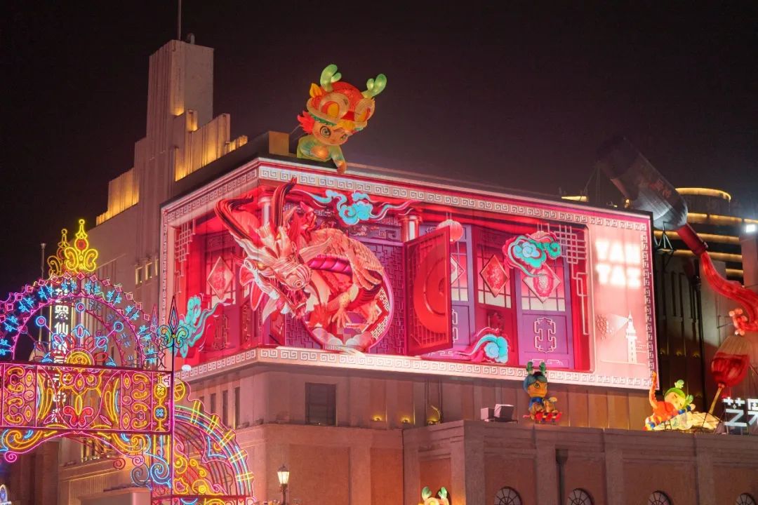 节庆期间,与经营表演配合效果叙事高潮,照明内容与故事节奏呼应,强化印象,触发观众情感体验。象征景观引发情感基因,通过色彩、质感、动态传达视觉信息,体验感强。