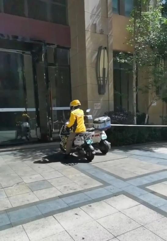 1栋大堂门口,也是快递车日常停放点。下午5点半,快递员徐彬刚把包裹送上楼,回到车旁查看新订单,听到身后一声巨响。他回头看见3米远处,一个年轻的外卖员倒在地上。