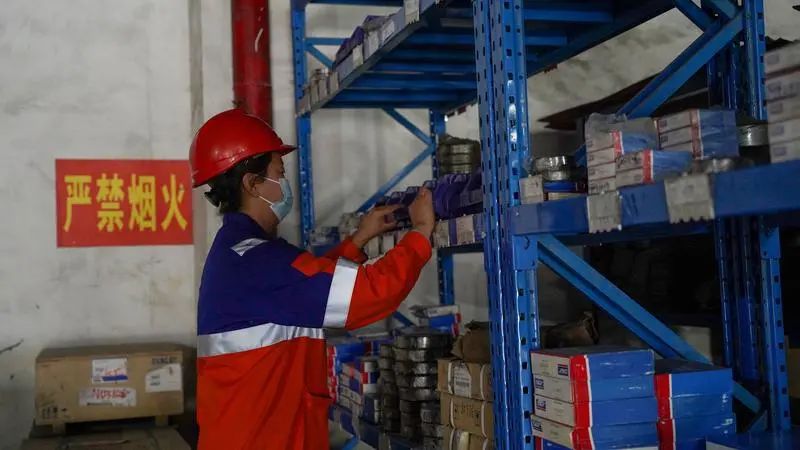 巴桑在库房内清点设备。入职湖北企业