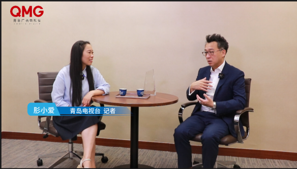 2024年8月16日在山东青岛召开对外经济贸易大学全球校友青岛峰会,青岛电视台教育频道记者对洪灏进行了专访。