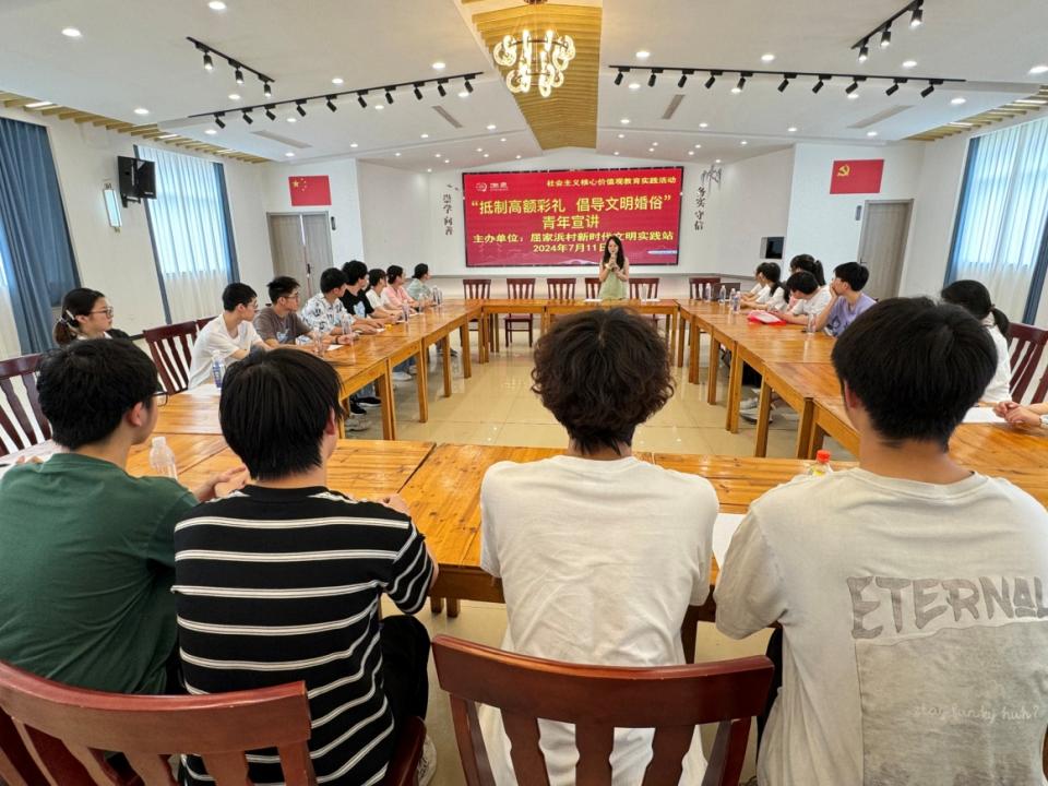 “反对高额彩礼,倡导喜事新办。积极倡导低彩礼、零彩礼,摒弃高额彩礼、以婚谋财等婚俗陋习……”在洲泉镇屈家浜村文化礼堂,志愿者结合典型案例,用通俗易懂的语言传递文明婚俗的正能量,引导大家自觉抵制高价彩礼、大操大办等不文明婚俗现象。