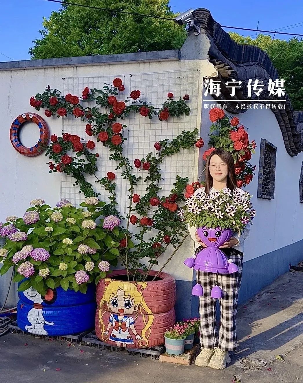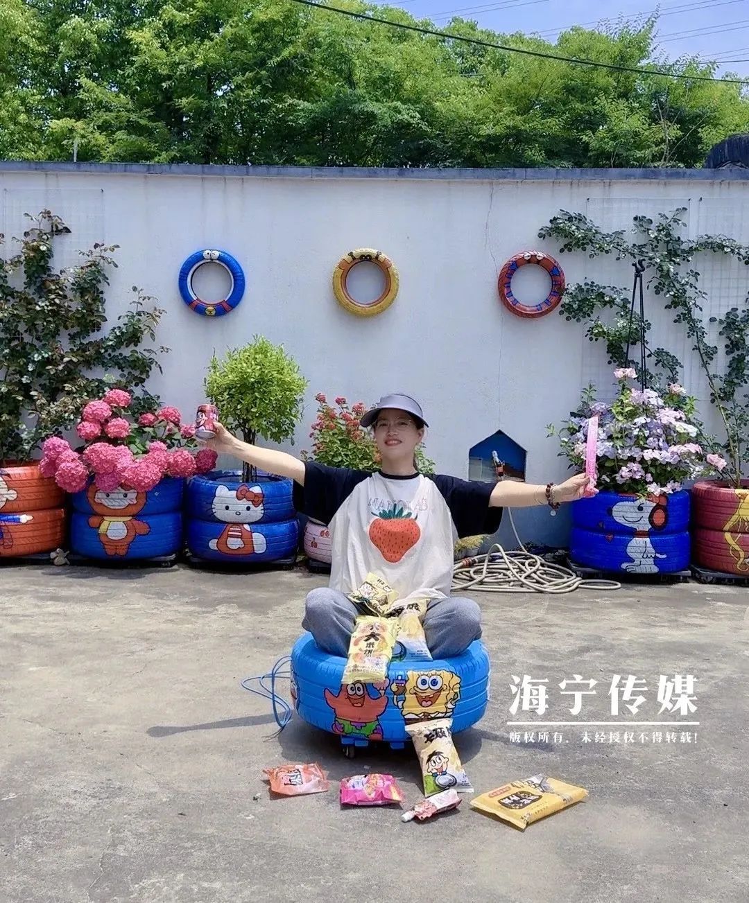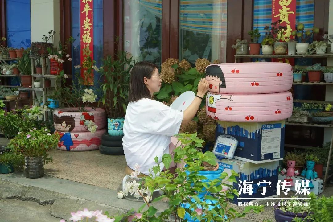 女主角丨废旧轮胎“穿”花衣,她用画笔刷新庭院“高颜值”!