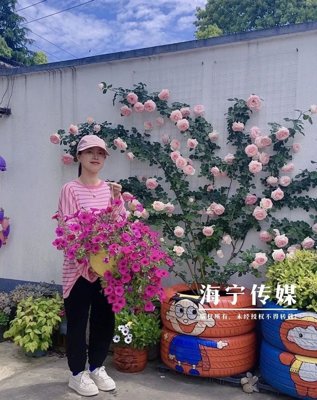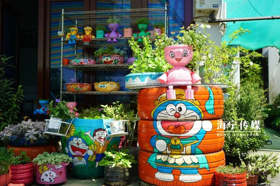 吸引超7万粉丝关注不知不觉,邱燕华的作品越来越多,家门口的手绘轮胎花盆缤纷夺目,花草绿植绚烂多姿,花花世界俨然成了村里的一道靓丽风景线。