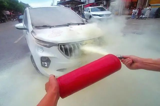 在实际救火作业中,新能源汽车电池易发生复燃现象,即便火势扑灭以后,依然建议车主不要返回车内,以免因小失大。