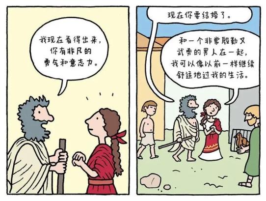 最后,希帕嘉做出了漫画中最重要的选择:从秘密阅读和谈论哲学,到将她的想法付诸实践。“这样,她不仅会对克拉特斯感到自豪,还会成为平等的伙伴。”