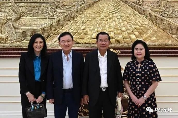 他信回国前和妹妹英拉一起参加了柬埔寨首相洪森的生日会