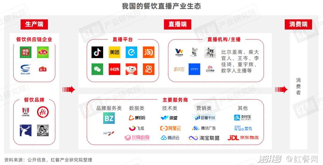 在餐饮行业发展和技术进步的推动下,餐饮企业、电商平台、内容平台、直播机构等都参与到餐饮直播的行列当中,它们围绕餐饮卖货、提升品牌形象和影响力等内容进行直播,促进餐饮直播产业链逐步走向成熟。