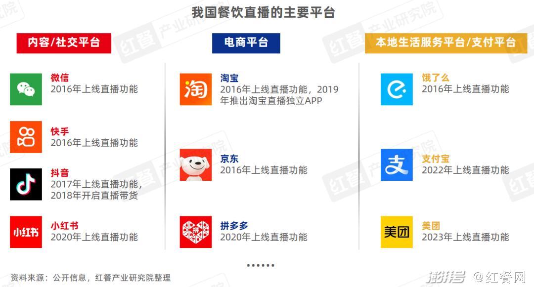 纵观这些平台上线直播功能的时间,大致可追溯至2016年。彼时电商直播兴起不久,平台看中直播的潜力,为商家提供直播的沃土。经过几年时间的发展,小红书、支付宝、美团等平台也跨界涉猎餐饮电商直播的业务。