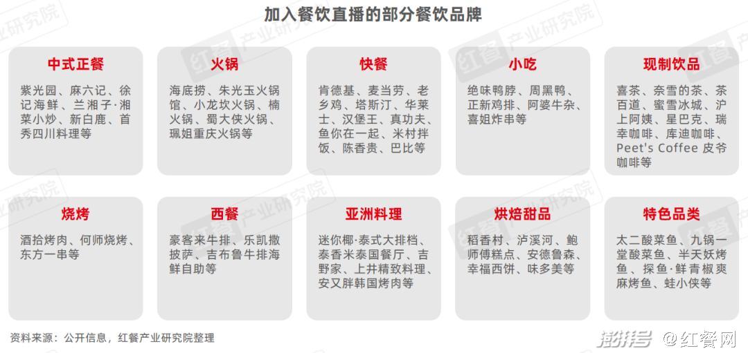 在这份报告中,红餐产业研究院对餐饮直播的主播、产品、场地、形式、技术、传播、经典案例等多方面的发展亮点进行了详细剖析,本文将选取部分内容做重点展示。
