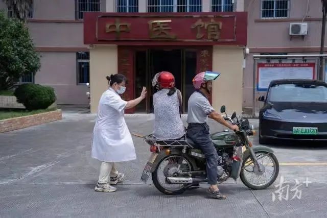 翁颖将行动不便的病人送出中医馆。翁颖到来之前,中医馆只有一名中医师。“一个人能做的太有限了。”李中山说,卫生院没有中药房,患者只能服用配方颗粒或自行到药店抓药。受设备限制,医生能做的理疗也只有简单的推拿、艾灸。