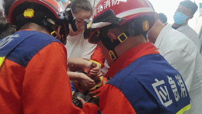 经过与医生和家属商讨消防员决定利用钢筋速断器