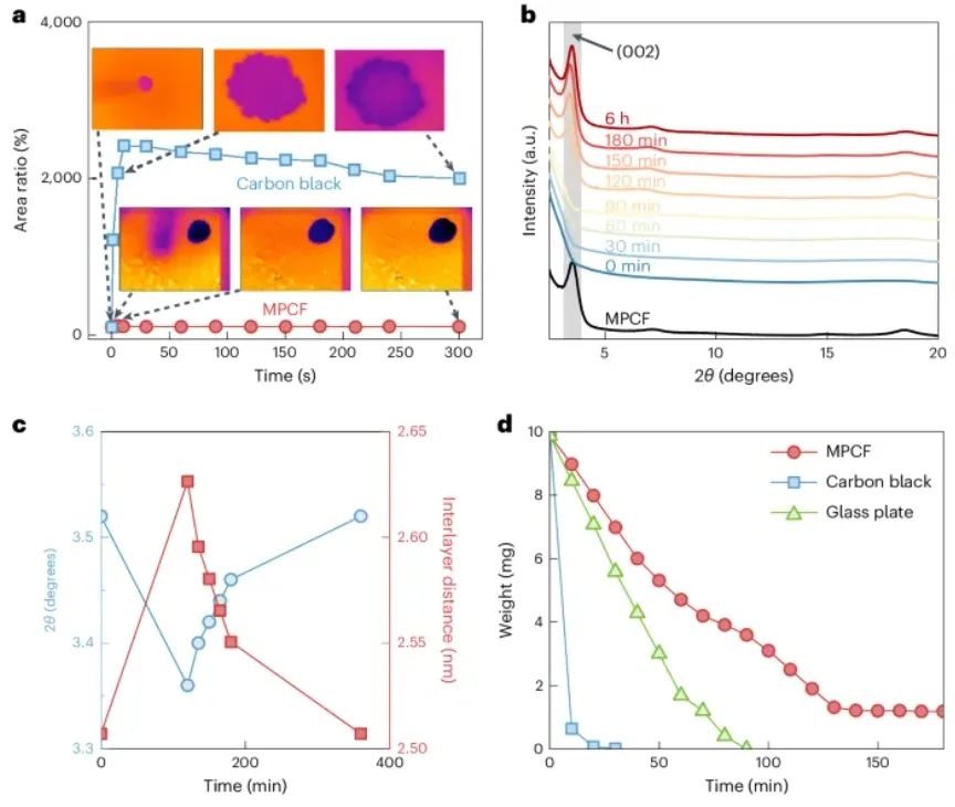 图3 在MXene/聚乙烯醇复合膜MPCF中,极慢的水渗透