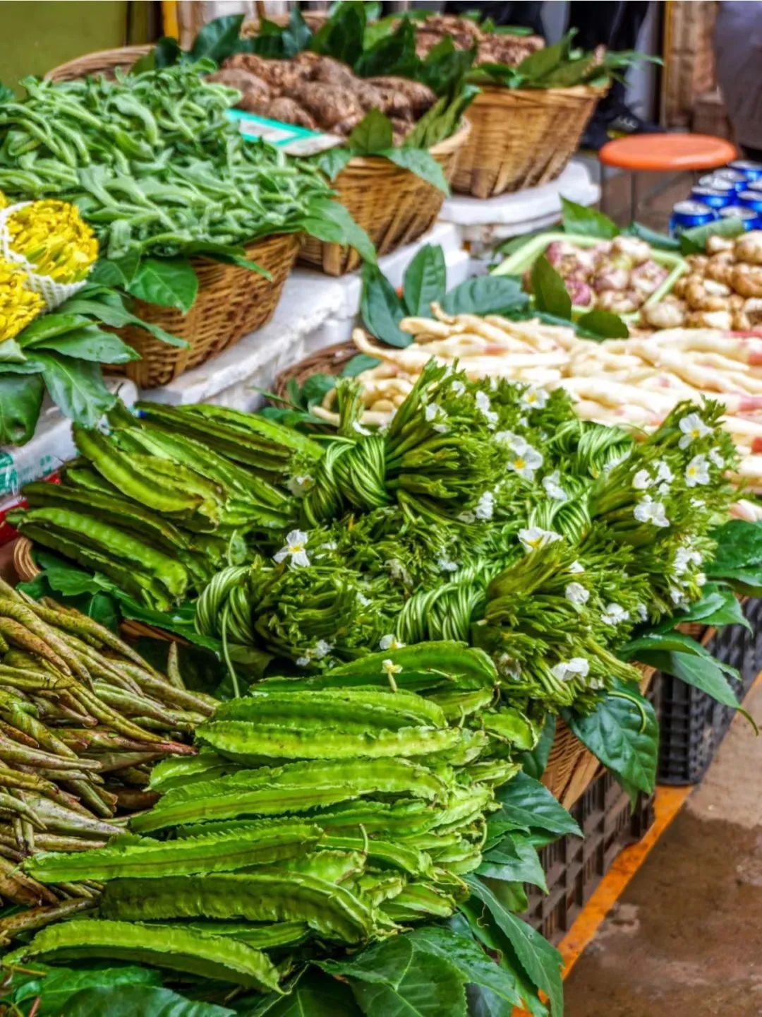 去逛云南的菜市场,好多蔬菜都不认识。各种奇奇怪怪的绿叶蔬菜,普通的大白菜都能是变个色,变成紫色。
