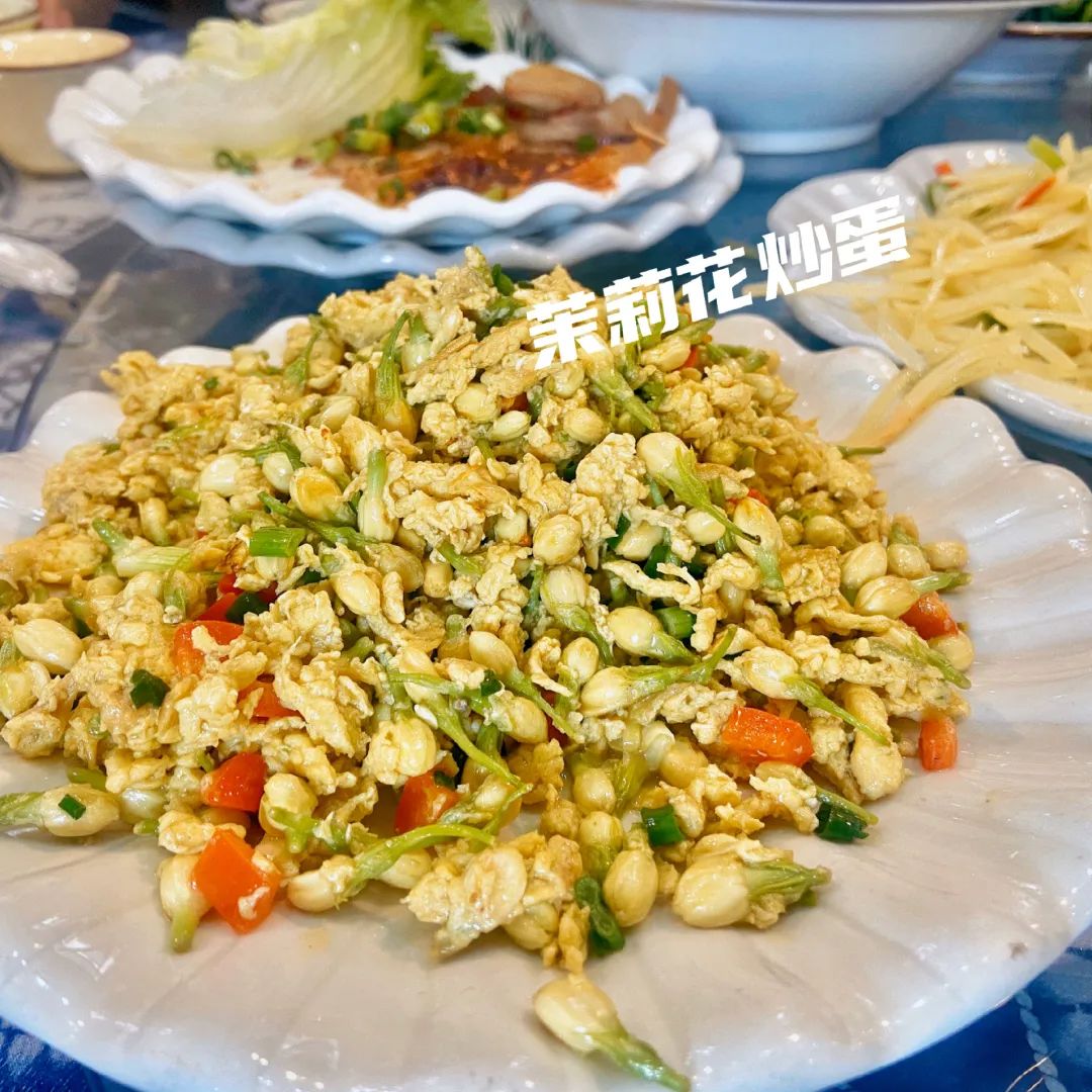 不管是茉莉花、金雀花全都能炒。尤其是金雀花煎蛋,吃起来味道甜滋滋的,也不需要焯水,洗一洗就能吃。