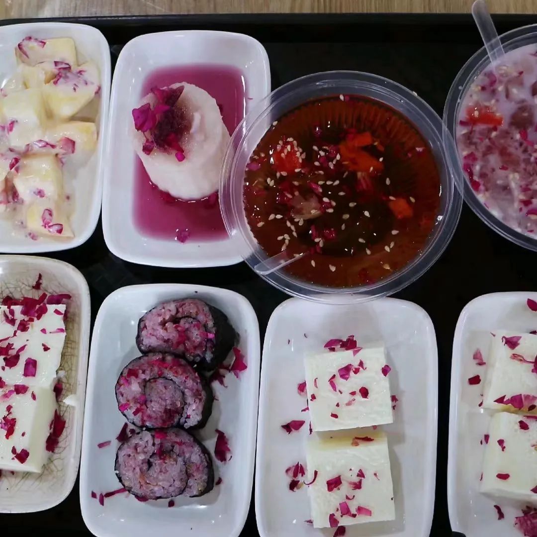 玫瑰米糕、玫瑰奶冻、玫瑰木瓜水、炸玫瑰花……足足三十多种,就算全上齐,也不出百元。一桌人说说笑,鼻尖玫瑰香气弥漫,风雅至极。