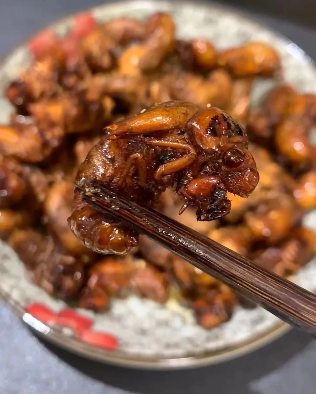 细小的腿嚼起来发出“嘎吱嘎吱”的脆声,像是再吃薯片一般,却带着高蛋白的香味。