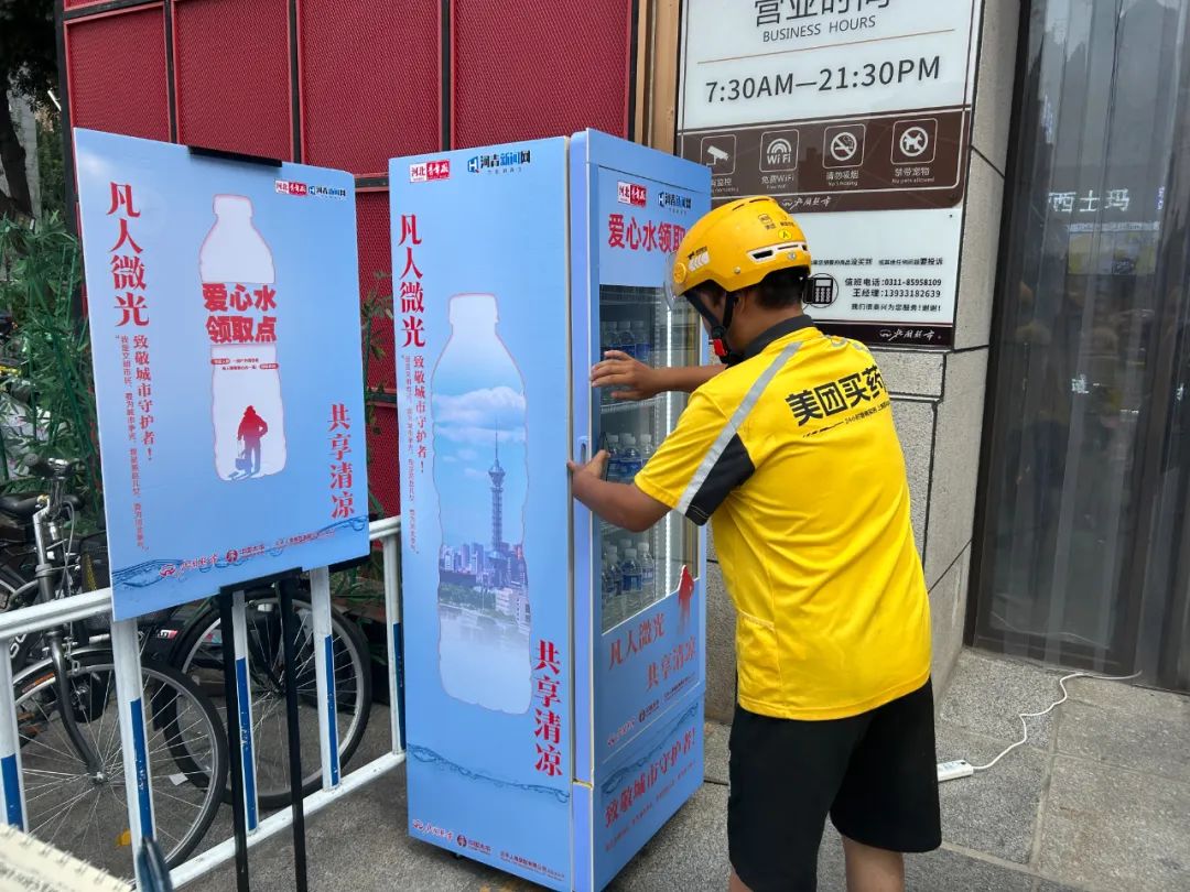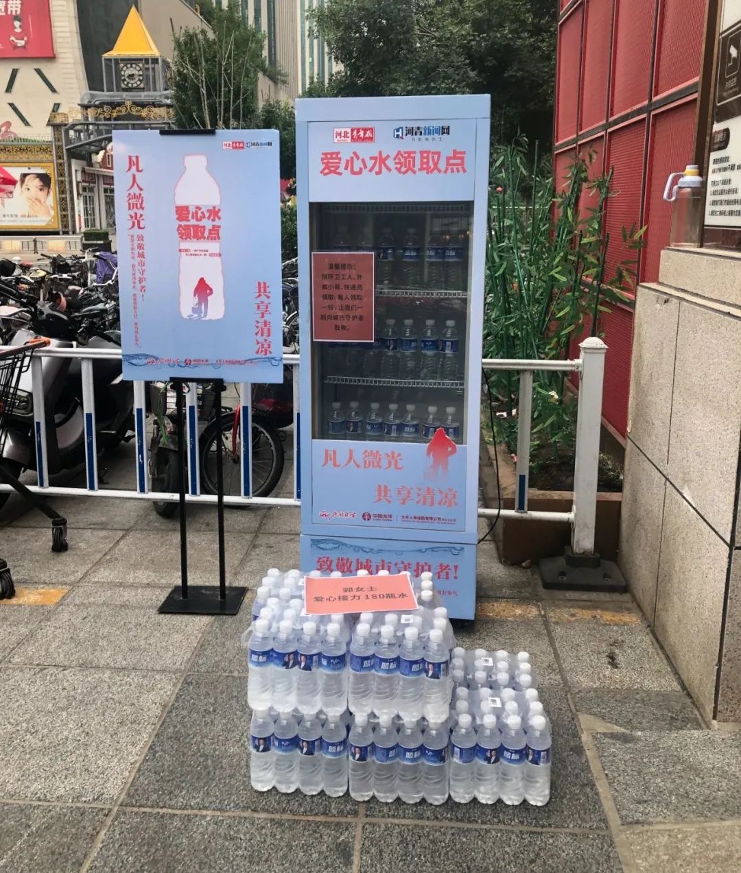 8月16日是“爱心冰箱”亮相石家庄的第三天。它在为越来越多户外工作者提供清凉饮用水的同时,也收到了一大波“正能量”反馈。