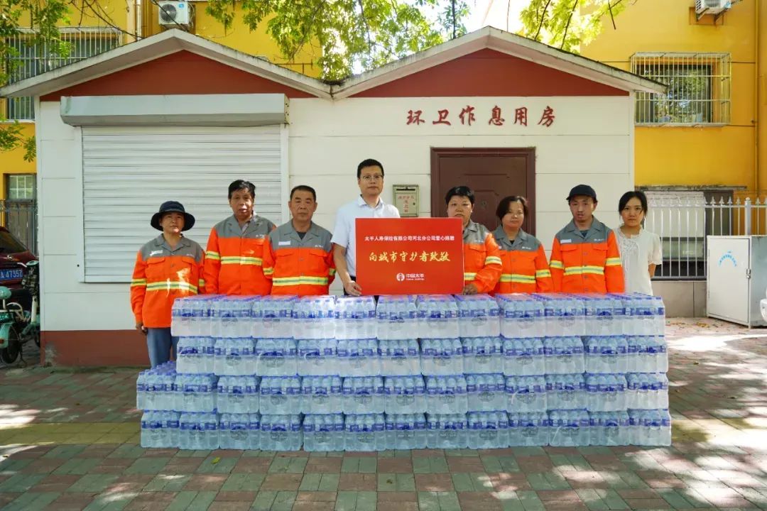 除了设置“爱心冰箱”供户外工作者自取,此前,太平人寿保险有限公司河北分公司还组织了爱心志愿者,将2400瓶“爱心水”先后送往石家庄新华交警大队和石家庄市新华区卫生队,直接送到一线交警和环卫工人手中。