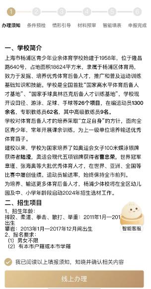 第一步:办理须知。详细了解招生简章后点击“我已阅读”,进行“线上办理”。