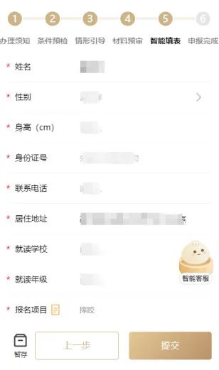 第四步:智能填表。家长填写基本信息后即可生成申请表,点击“提交”即报名成功。