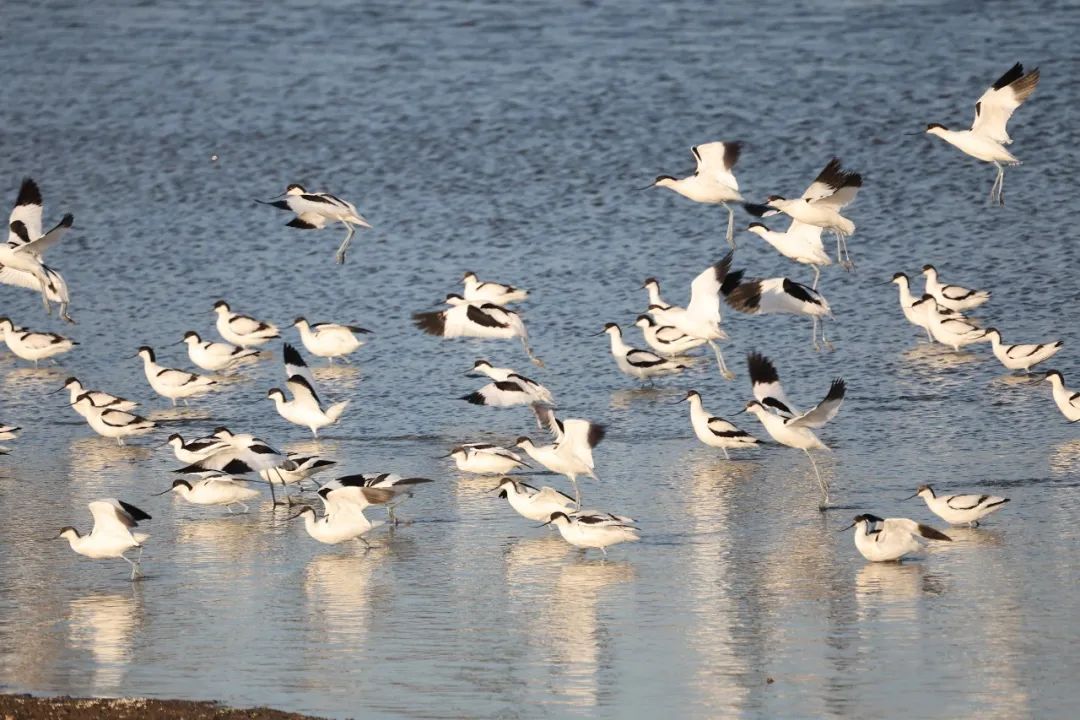 《江苏连云港:近万只反嘴鹬现身海滨湿地》