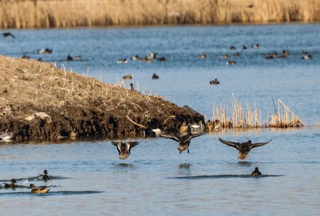 ▲ 一大批候鸟在月牙岛生态湿地聚集,与往年相比数量不断增加,种类也越来越多。据统计,在月牙岛迁徙、停歇的候鸟有斑嘴鸭、绿头鸭、灰鹭、大白鹭、红嘴鸥、白骨顶、黑水鸡、夜鹭等20余种。(记者:牟进勇 通讯员:王雅萱)