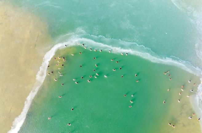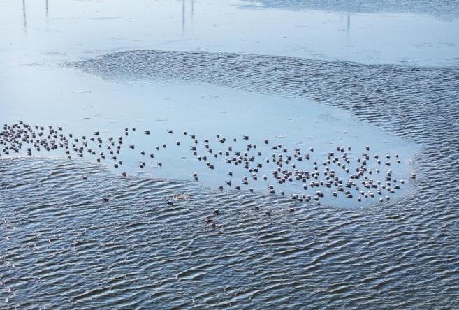 ▲ 赣榆新城沿海湿地上万只翘鼻麻鸭在水中漫步觅食。(记者:张泽瑞 通讯员:司伟)