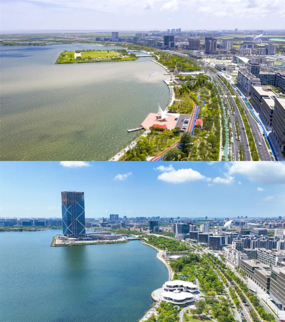 在滴水湖北侧,滴水湖金融湾正在打造临港新片区跨境金融总部集聚、金融业务创新的承载区,助力上海进一步链接全球市场。金融湾将于2025年全面建成,在建的核心地标“荣耀之环”也已呼之欲出。