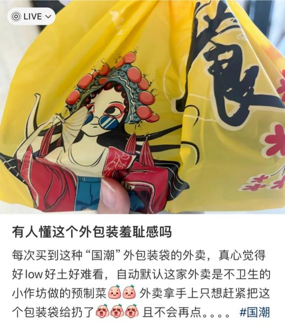 网友之所以称“国潮外卖”让人“饭缩力”拉满,消费者们顾虑的并非“国潮包装”的图案和包装本身,也并非不明白仅靠包装就将这类外卖一票否决未免太过武断。但不可否认,类似国潮素材的滥用,让其中本就良莠不齐、泥沙俱下的外卖商家被集体标签化,甚至形成偏向负面的刻板印象,也让消费者们失去了探索和试错的兴趣和勇气。无论是网上对“国潮包装”的调侃,还是帖子里各种点干净外卖的Tips,无非是消费者们不想在食品安全的问题上踩雷罢了。自然不是所有的商家都能付出成本在包装上下足功夫,但干净卫生应该是基本保证,消费者也自会用脚投票。