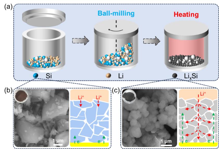 图1. LixSi负极合成过程示意图