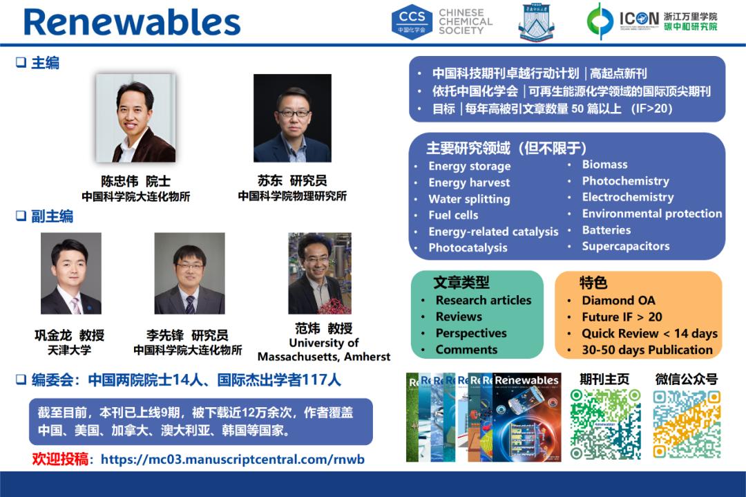 期刊主页:https://www.chinesechemsoc.org/journal/renewables