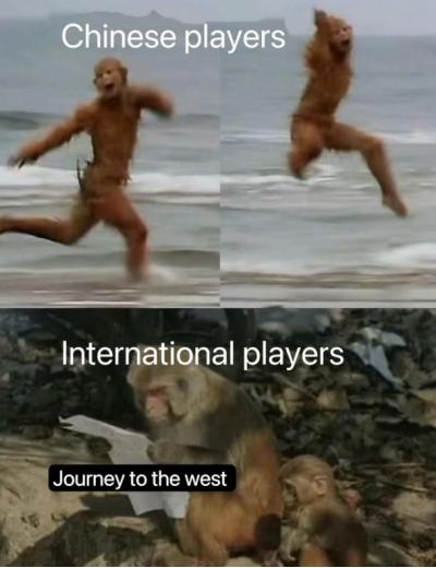 这一次,终于轮到中国玩家操心浓眉大眼的外国人了。有玩家看着游戏界面里充满古韵的中文文案感叹:“(外国人)就这看得懂有鬼了。”外国人的反应也确实印证了中国玩家的猜测,在一张梗图中,中国玩家在《黑神话:悟空》发布日快乐起飞,国际玩家却在恶补《西游记》小说。相关贴子下,外国人现身说法:真就是我本人。