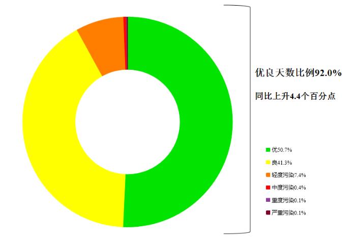 7月,全国339个地级及以上城市平均空气质量优良天数比例为92.0%,同比上升4.4个百分点;平均重度及以上污染天数比例为0.3%,同比上升0.1个百分点;由沙尘天气导致的平均超标天数比例为0.9%,其中重度及以上污染天数比例为0.3%。
