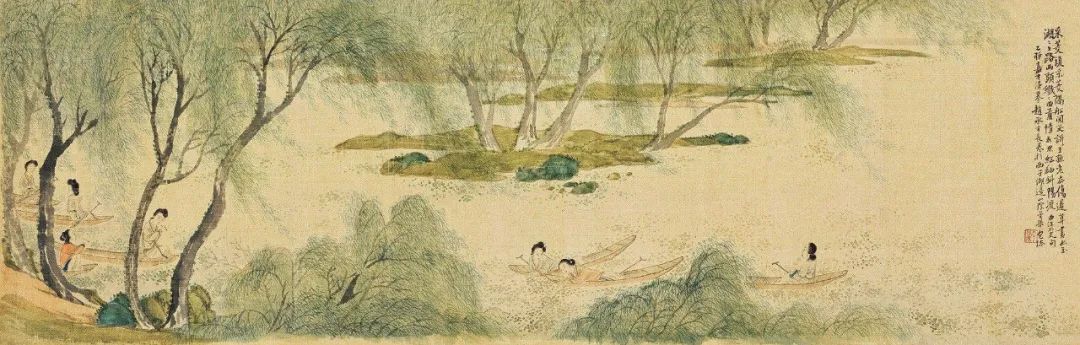 清代 潘振镛 《采菱图》她解释道,虽说是“秋分菱角舞刀枪”,那是熟透的菱角。对于菱角爱好者来说,夏天岂能错过鲜嫩的菱角呢?