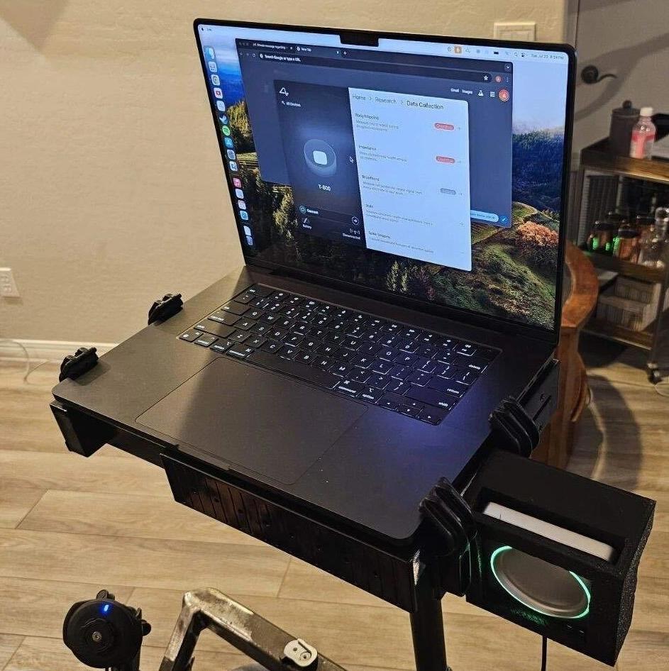 在使用 Link 的第二天,Alex 首次使用 CAD 软件 Fusion 360,并成功为他的 Neuralink 充电器设计了一个定制支架,然后进行 3D 打印并集成到设置中。