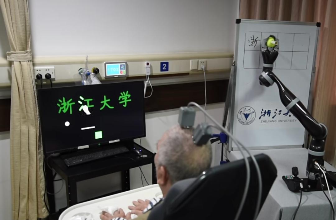 今年四月,浙江大学脑机接口团队首次实现了让高位截瘫的患者用脑机接口控制机械臂书写汉字,虽然此前早已实现了英文字母的书写,但是汉字与英文相比,难度更大,一个横没写好,可能就是另一个字了,这要求机器与大脑之间的连接更加精确。