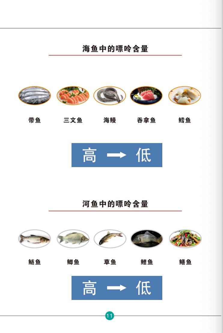 对于海里的食物、淡水的食物以及陆地上的各种情食物,我们均需要按照图片中所展示的由高到低进行食物选择。比如海鱼中的嘌呤含量,其中带鱼是最高的,而鳕鱼其嘌呤含量最低,所以我们能够尽可能的去选择嘌呤含量低的这一段的食物进行。然后河鱼当中的食物嘌呤含量也同样是遵照这个原则,比如说尽可能的去选择鳝鱼,而不选择鲢鱼。