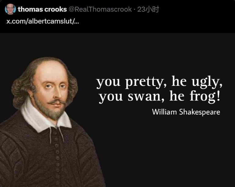 一夜之间,这句话成为了外网上火出圈的新梗,甚至还被P入“莎士比亚语录”……