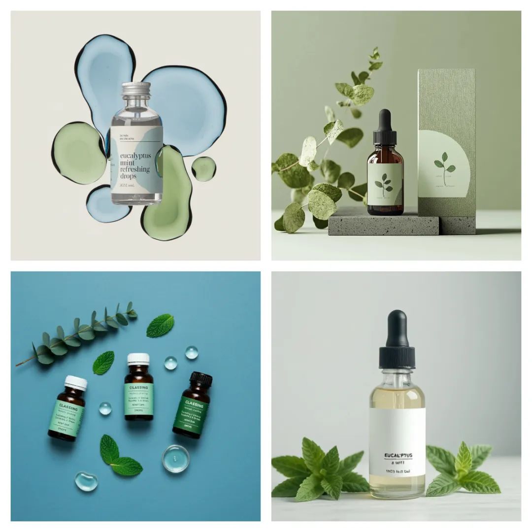 Prompt:eucalyptus and mint classic refreshing drops minimalist packaging.