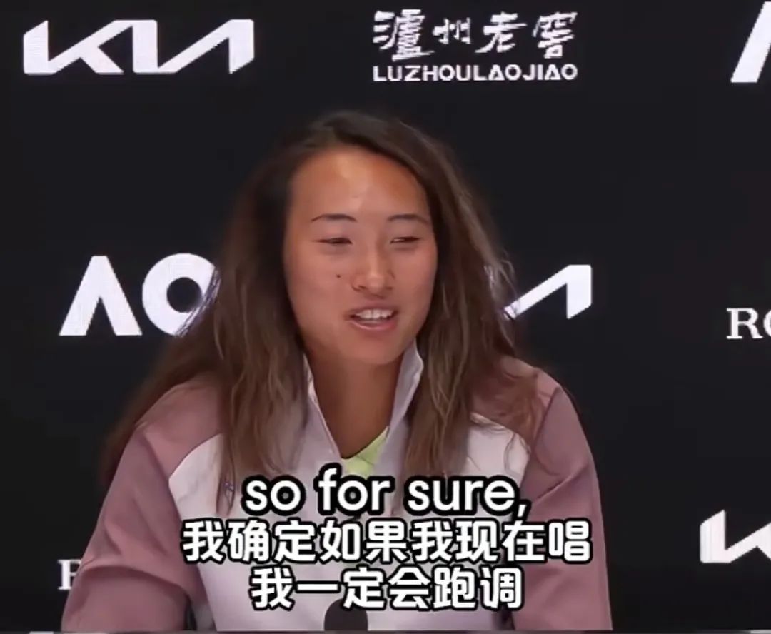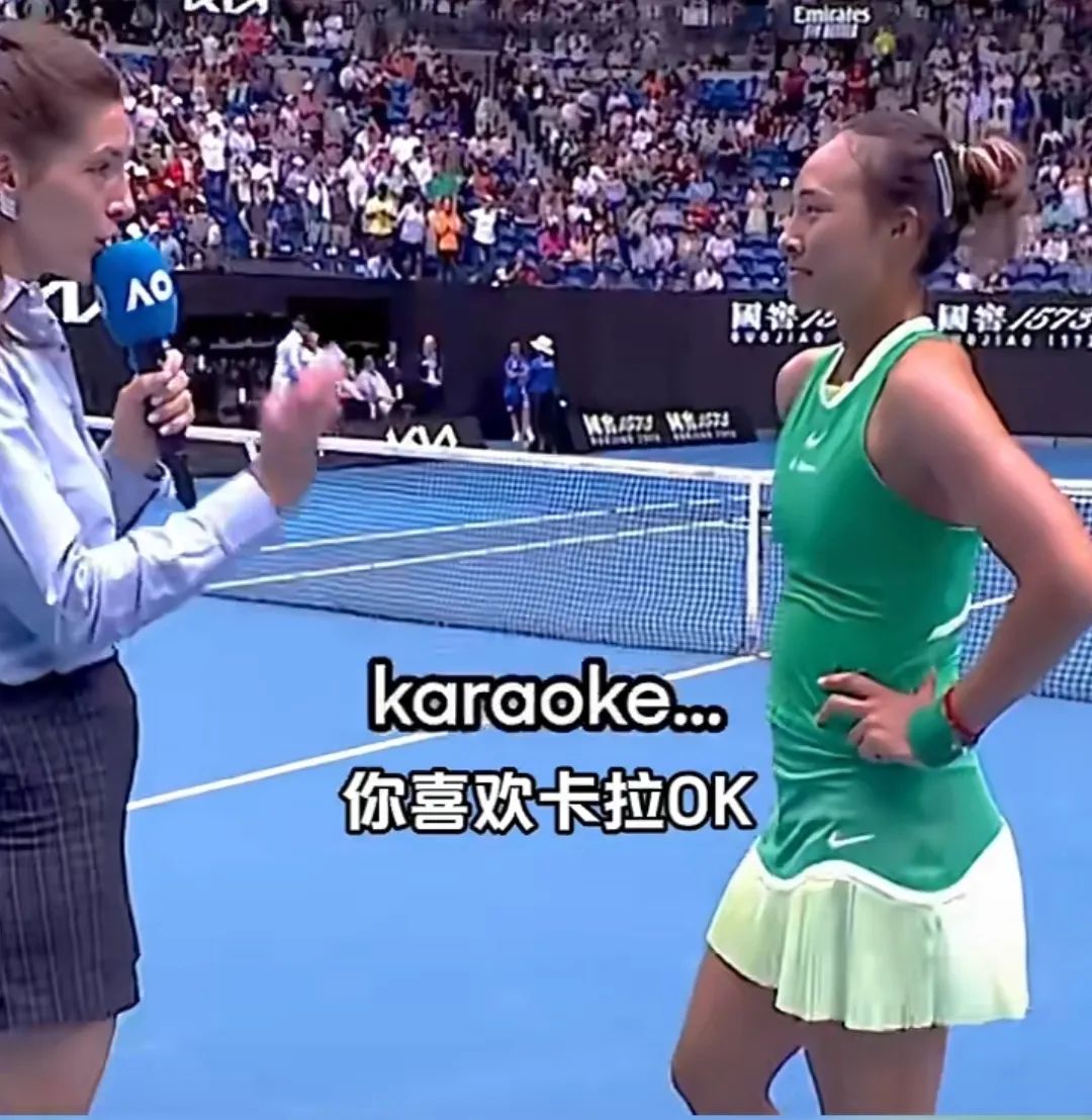 (图/网络)某次澳网采访,外国记者问郑钦文,“听说你喜欢卡拉OK?”郑钦文笑着点头,“拜托不要让我现场献唱”。之后的某次记者招待会上,再次聊到相关话题,郑钦文笑着说,“如果你让我唱,我肯定是敢唱的,但最近其实一直没怎么练,还没有开嗓。如果我现在唱,一定会跑调的。”