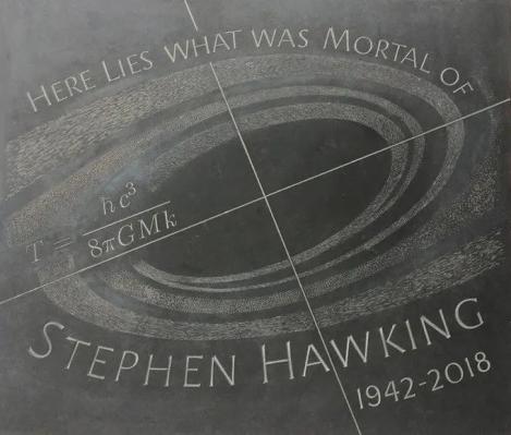 6年前霍金的骨灰安葬在威斯敏斯特教堂达尔文和牛顿的墓之间。墓碑上刻着霍金辐射的温度公式。| 图源:Stephen Hawking - Wikipedia但是,到这一步为止,黑洞还应有一个对应于热力学第三定律的性质。