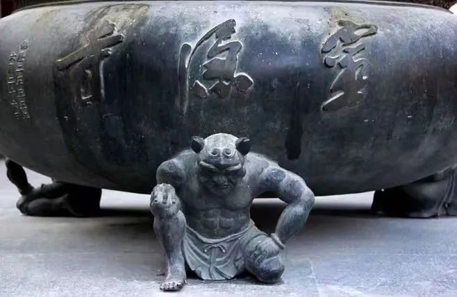 灵隐寺济公殿铜香炉前的一个“神兽”形象,出现在游戏的一个远景中。