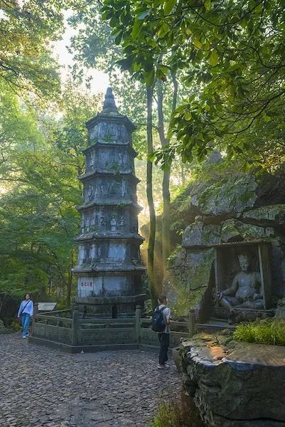 灵隐寺始建于东晋咸和元年,至今已有约一千七百年的历史,是杭州最早的名刹。地处杭州西湖以西,背靠北高峰,面朝飞来峰,两峰挟峙,林木耸秀。寺院大雄宝殿中有一尊释迦牟尼佛像,是以唐代禅宗佛像为蓝本,用二十四块樟木雕刻镶接而成,共高24.8米,妙相庄严,气韵生动,为国内所罕见。