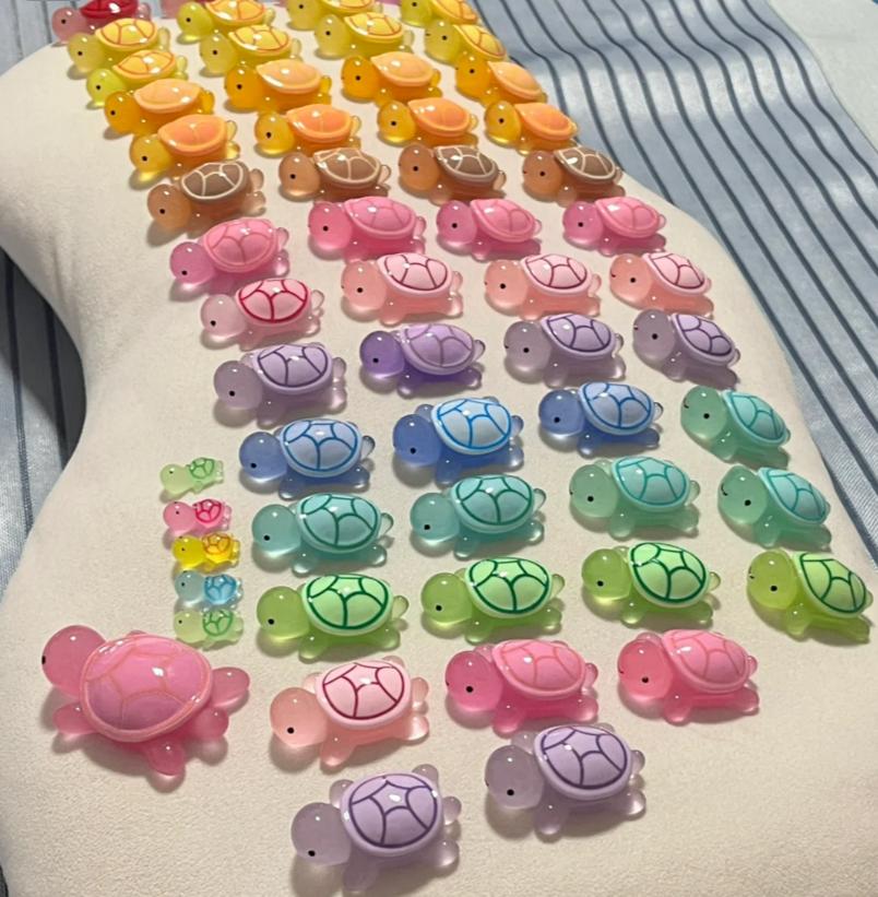 要说近来最火的小玩具,卡皮巴拉、Loopy还有线条小狗可能都要靠后站站。一群五颜六色的树脂类小乌龟玩具,因为直播间的“乌龟对对碰”盲盒游戏,开始迅速捕获大家的芳心。