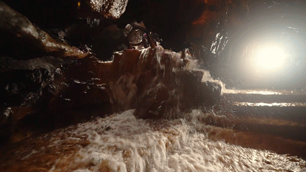 洞内的天然步道特别狭窄,耳边只听得到水声,冒险的刺激感拉满,感觉自己就像在仙侠电影的片场。