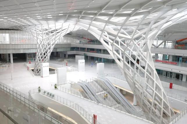 经电梯或步梯向下便进入地铁的站厅层,从火车站出站闸机到地铁站台最近只有300米,整个枢纽内部设置了61台扶梯、直梯,保障乘客舒适换乘、快速换乘。