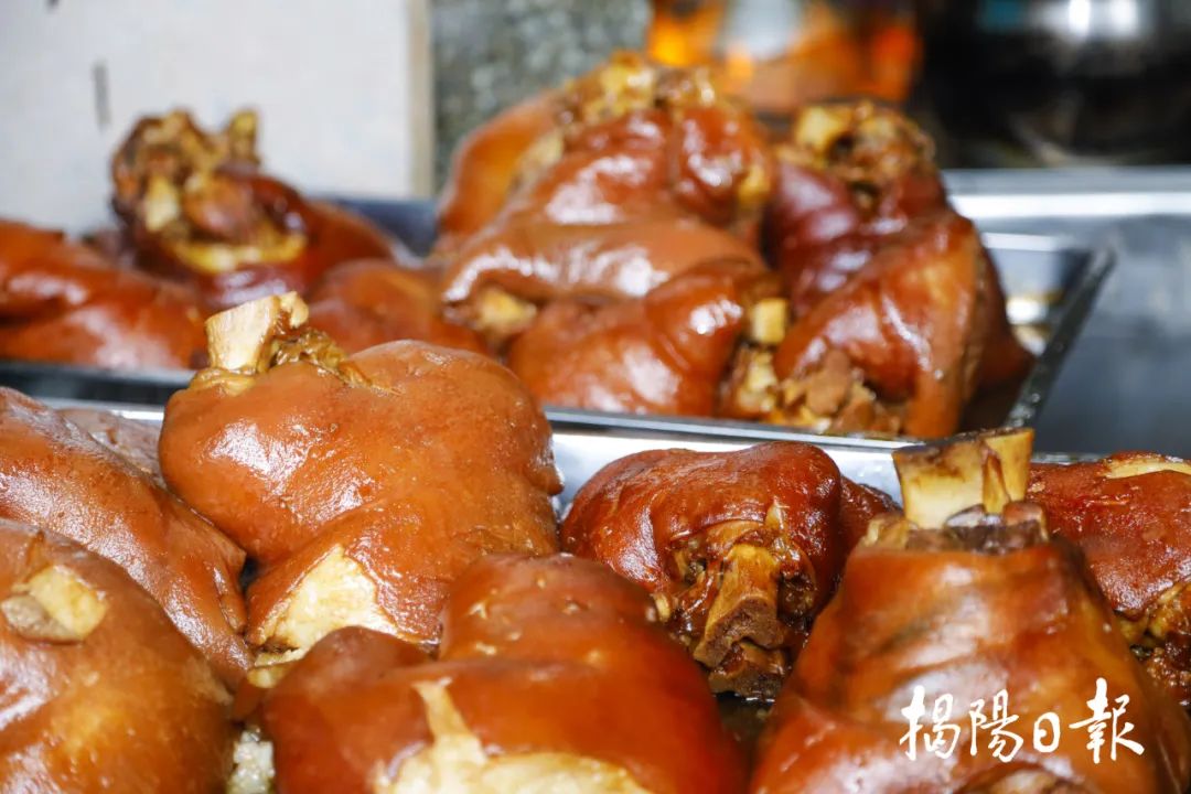 据了解,正宗的“隆江猪脚”制作时选用猪腿肉,先用喷火枪将猪脚上的粗毛细毛全部烧光,从头到尾砍成四块:头圈、断轮、四点、蹄尾。然后将猪脚块泡在香料酱油里,先大火烧开,再转小火熬肉,使多余的油脂渗入卤汁,肥肉瘦肉卤到极端透彻,等到卤汁熬到像糖浆一样起胶质时,这锅猪脚就算是成了。在过去,隆江猪脚饭是被隆江人当作早餐来吃的。以前,由于水陆方面的交通优势,隆江镇成为了惠来县货物中转的一个重要商贸镇,干事的挑夫贩卒云集。由于他们都干体力活,为了能耐饥和增加体力,早餐就会选择饱肚实在的猪脚饭。而现在,随着生活水平的提高,肉食更是成为大众餐桌不可或缺的食物,隆江猪脚饭也成为许多上班族“躲得过的午餐,躲不过的晚餐”,只需十几块钱,就能买到一整碗的胶原蛋白,加上几块钱还可以双拼,拼白切鸡、拼烧鸭、拼肥肠……一份诚意满满的猪脚饭,抚慰了无数人的胃。“拥抱”预制菜擦亮品牌