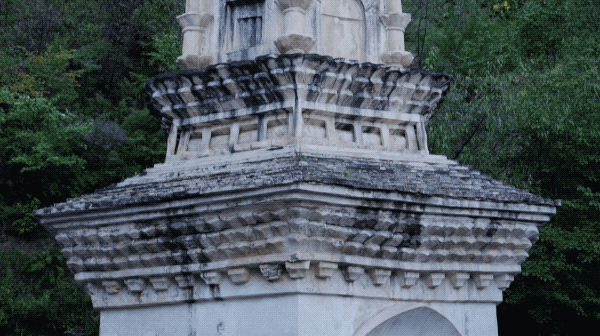东大殿的正立面上,支撑着屋顶的外檐柱露出墙面。梁先生当年发现,柱头做成了缓和的曲线,让柱子的造型变得更加丰满柔和,这个便是“卷杀”。